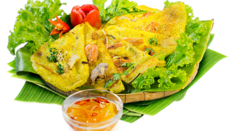 Crunch into these crispy pancakes, and you’re at a Vietnamese night market. Share them with friends on a sunny Californian patio, and let the shrimp, bean sprouts, and herbs tell their tale.